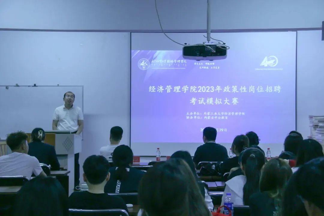 5月29日,willhill官方网站于主楼206教室举办2023年政策性岗位招聘模拟考试培训。中公教育呼和浩特市负责人朱志龙,中公教育面试研究院经理关颖,申论研究院经理张书华主讲,公司党委副书记、副经理徐德生,团学办公室教师邹斌出席,2020级等部分员工参加。